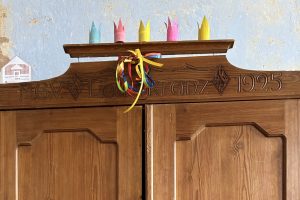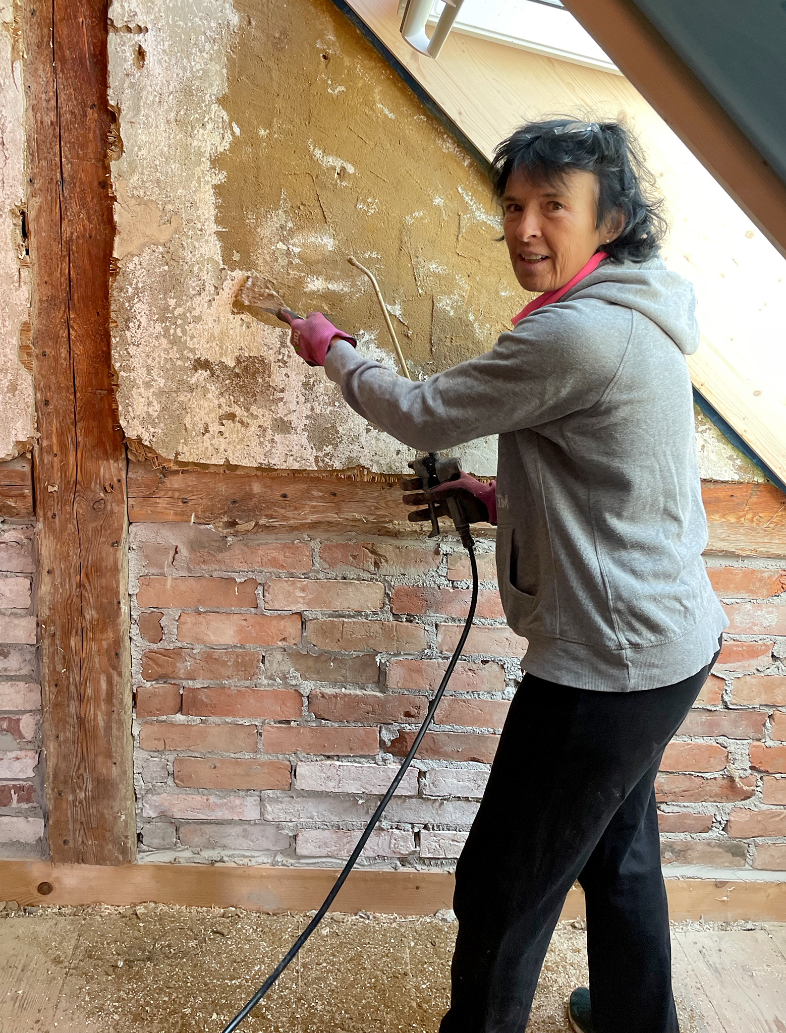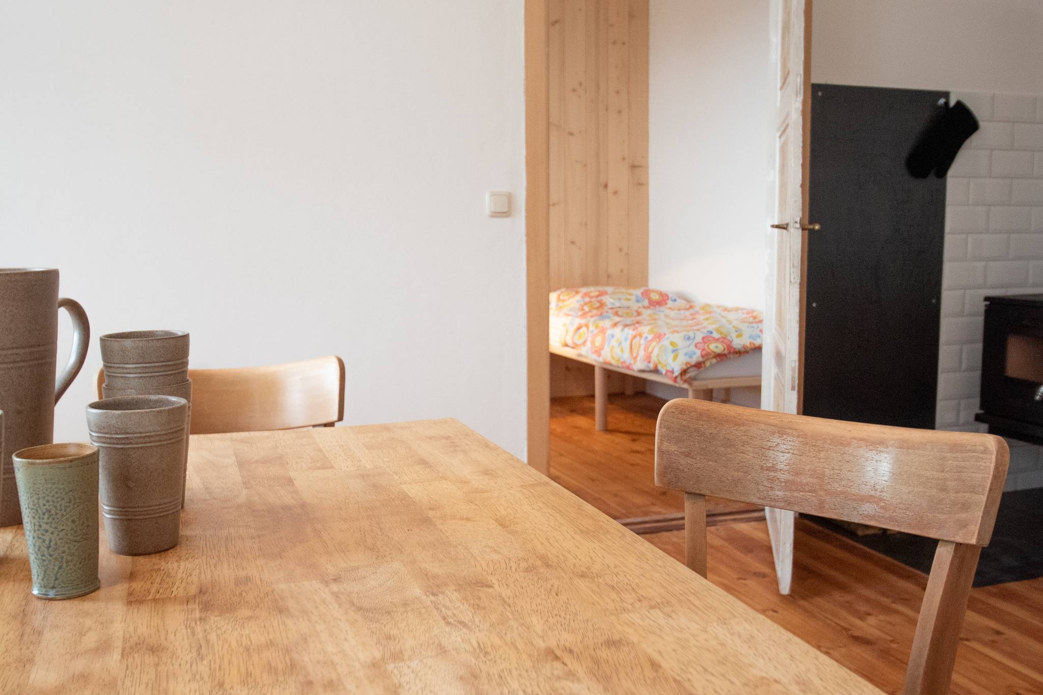 Die Ferienwohnung im Ostgiebel des DACHGESCHOSSES hat 2 Doppelzimmer (+Aufstockung möglich) 1 Bad und 1 Wohnküche.