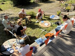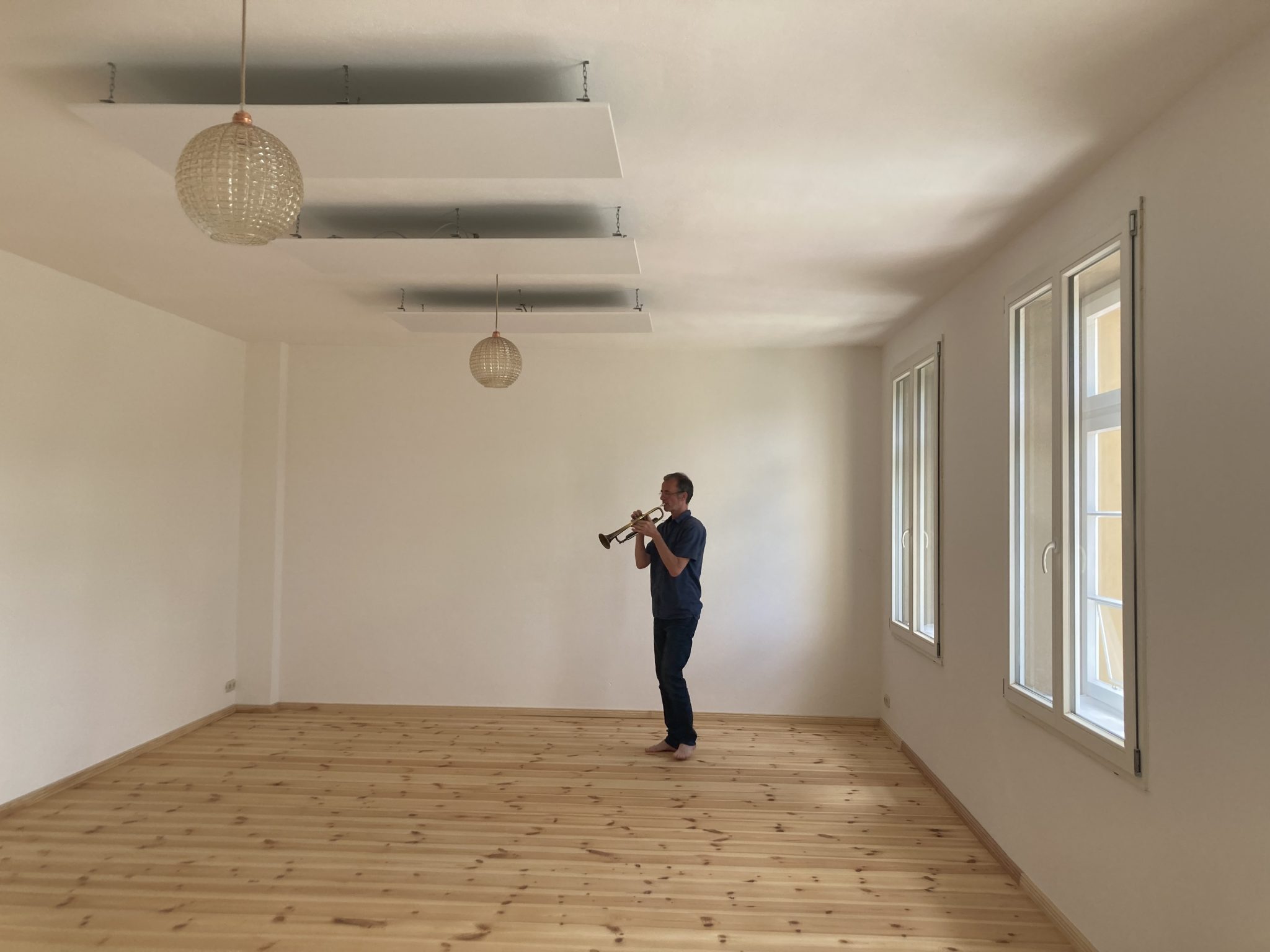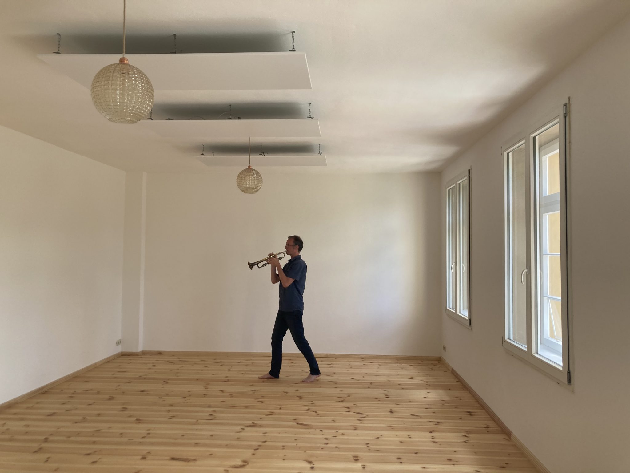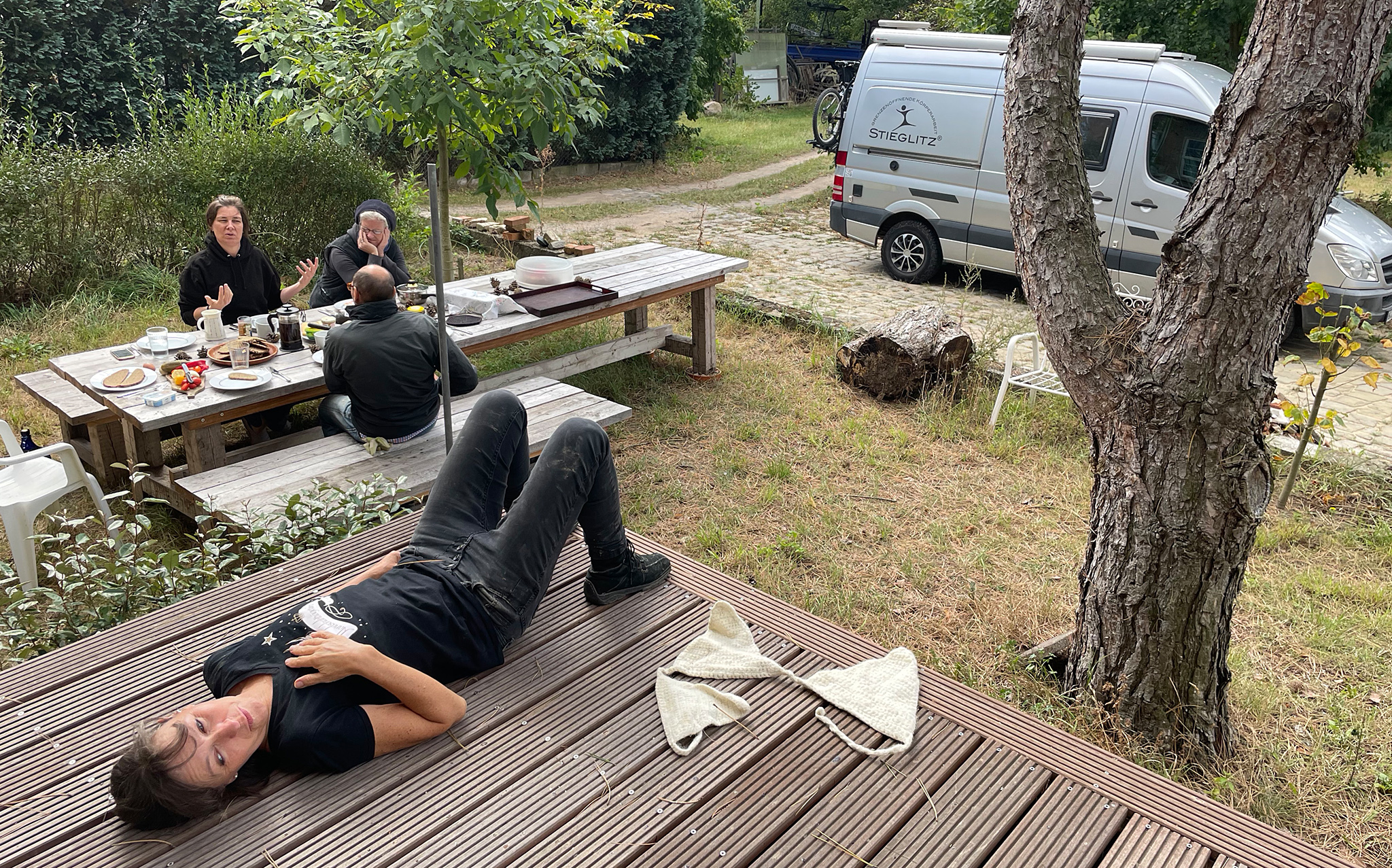 Gegenüber der Wohnung liegt im Westgiebel des Daches der ALLRAUM mit der Dachterrasse „Sternengucker“ für alle, für Yoga, Musik und Seminare.