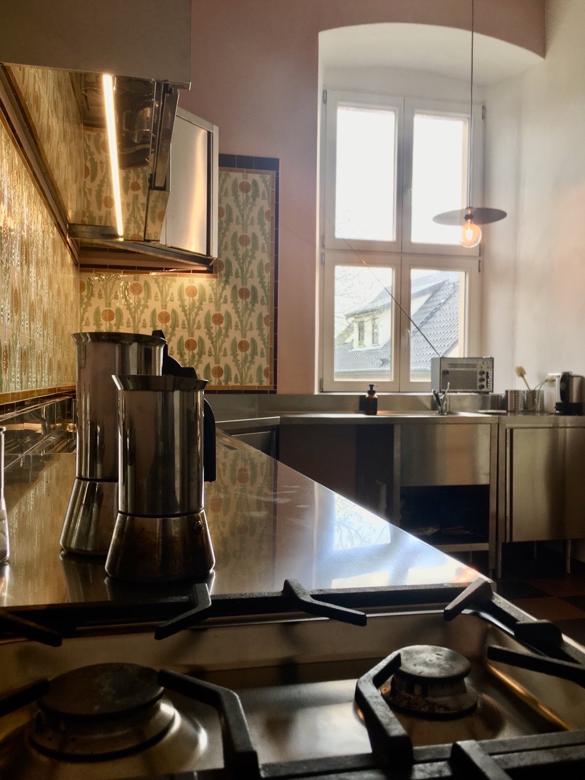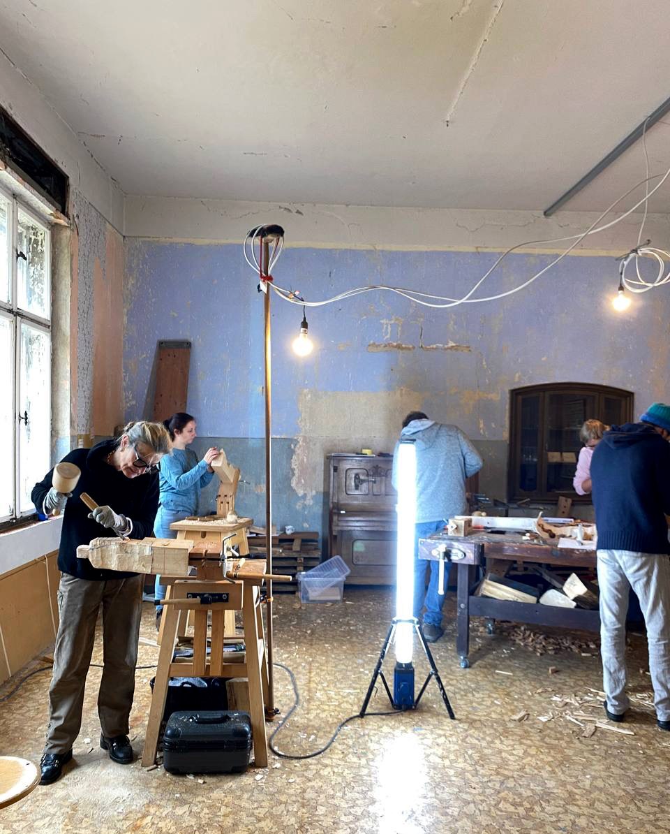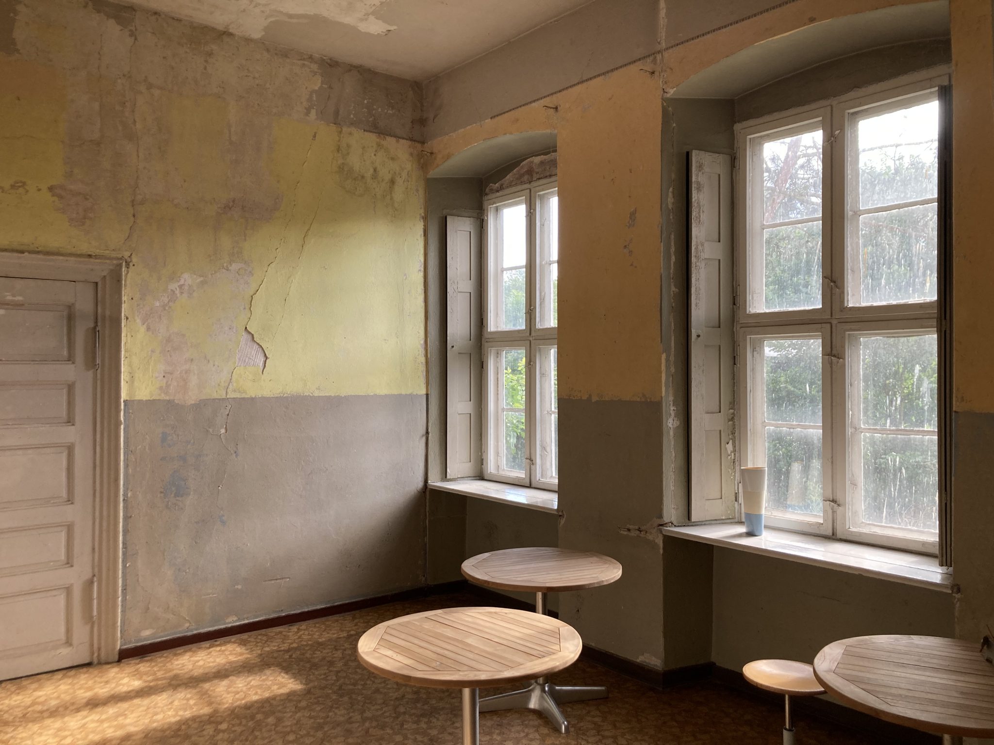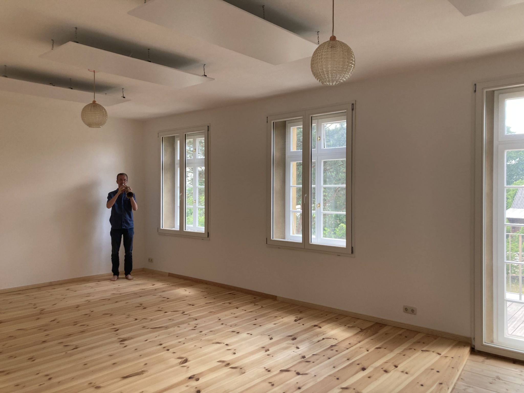 Hier gibt es zwei große ALLRÄUME, von je 50 m² für künstlerisches Schaffen, Feiern, Musik und Tanz. Einen kleinen ALLRAUM mit 19 m². Eine Ausgabeküche macht das Catering und die Selbstversorgung möglich.